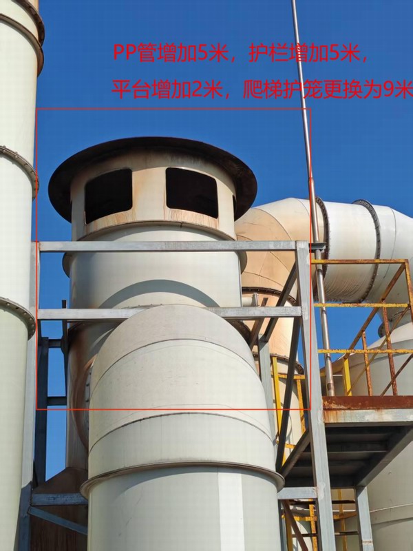 2.PPA管烟囱加装爬梯、钢平台、护栏、围栏。