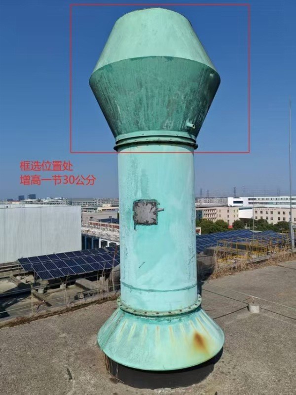 2. 碳钢烟囱加高,取样口下移。