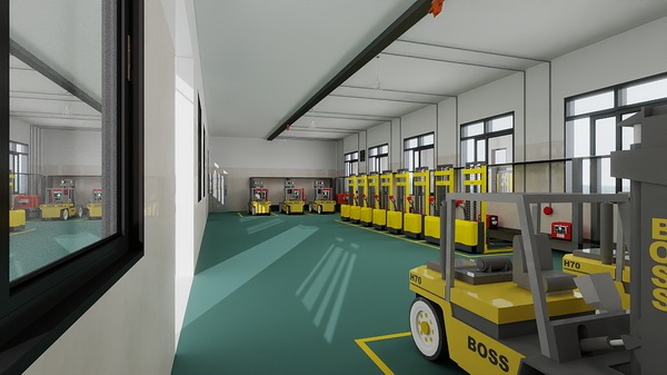 考虑到厂区缺乏叉车等设备的充电设施,叉车的使用频率日益增加,现有的叉车充电间已无法满足日益增长的充电需求。为了提高叉车的使用效率,保障物流作业的顺畅进行,现计划将焦糖色库改造为叉车充电间,在南北西三面安装支架及相关配套设施,增加充电间的面积及充电位数量,满足叉车充电需求减少等待时间,从而为叉车等设备提供便捷、安全的充电环境。